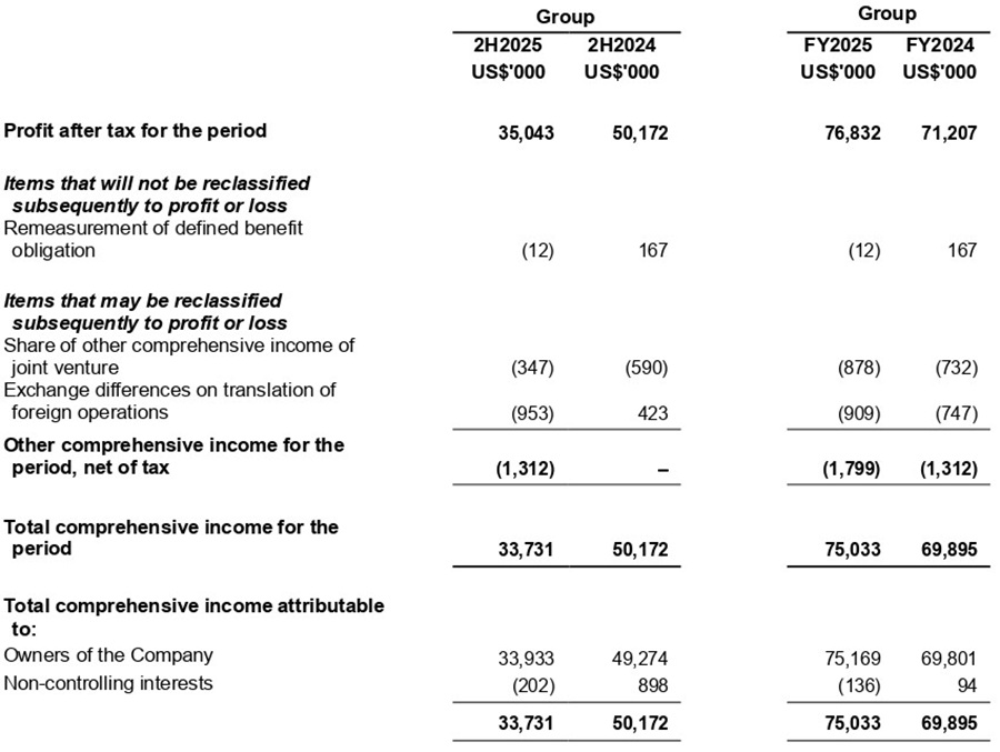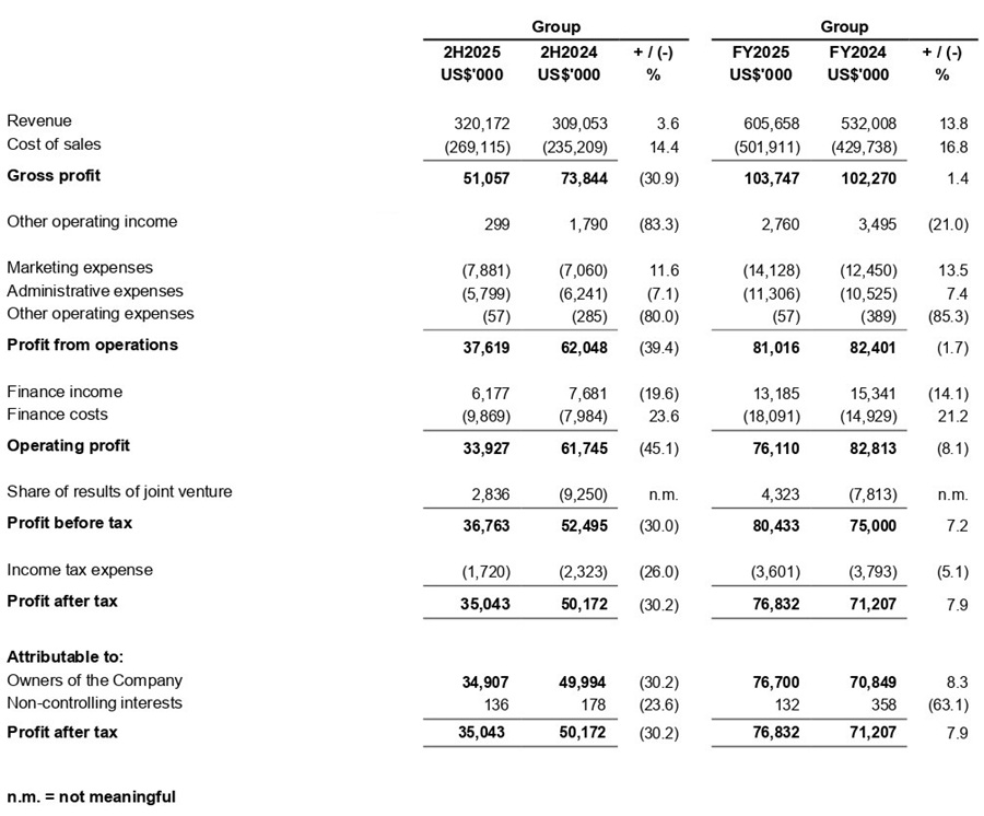 The Group posted net profit of USD76.7 million in FY2025, an 8.3% increase from USD70.8 million in FY2024.